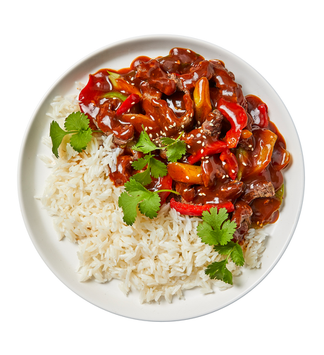 Basmati Rice, Beef Strips, Capsicum, Water, Onion, Shallots, Hoisin Sauce, Soy Sauce Gluten Free, Sriracha, Malt Vinegar (Wheat), Sesame Oil, Olive Oil, Chinese Five Spice, Corn Flour