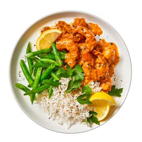 Basmati Rice, Prawns (Crustacean), Coconut Cream, Green Beans, Tomatoes, Onion, Vegetable Oil, Garlic, Tamarind (Tamarind, Water, Salt, Preservative (E202, E223)), Chilli Powder, Coriander, Tomato Paste, Salt, Ginger, Sugar, Cumin, Turmeric Powder, Black Mustard Seeds, Caraway Seeds, Cloves Ground