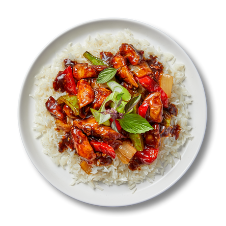 Basmati Rice, Chicken Drumstick Fillet, Capsicum, Water, Onion, Oyster Sauce (Mollusc), Peanut Butter (Roasted Peanuts (90%), Sugar, Vegetable Oils, Salt, Stabiliser), Shallots, Cashew Nut, Garlic, Malt Vinegar (Wheat), Premium Dark Soy Sauce, Sesame Oil, Stevia, Salt, Kaffir Lime Leaf